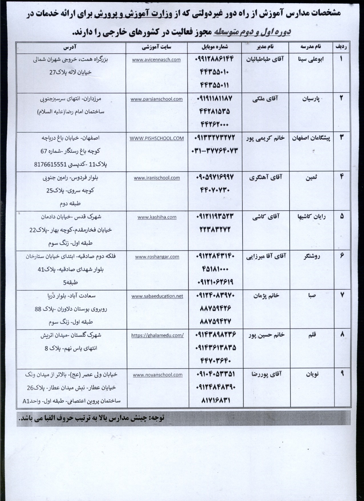 لیست مدارس آموزش از راه دور غیر دولتی خارج از کشور
